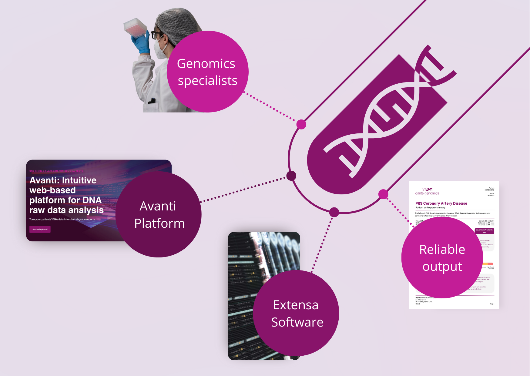 Customized bioinformatics offered by Dante using software based on artificial intelligence and machine learning, tested with tens of thousands of samples and leveraged over years of experience in sequencing and interpretation.